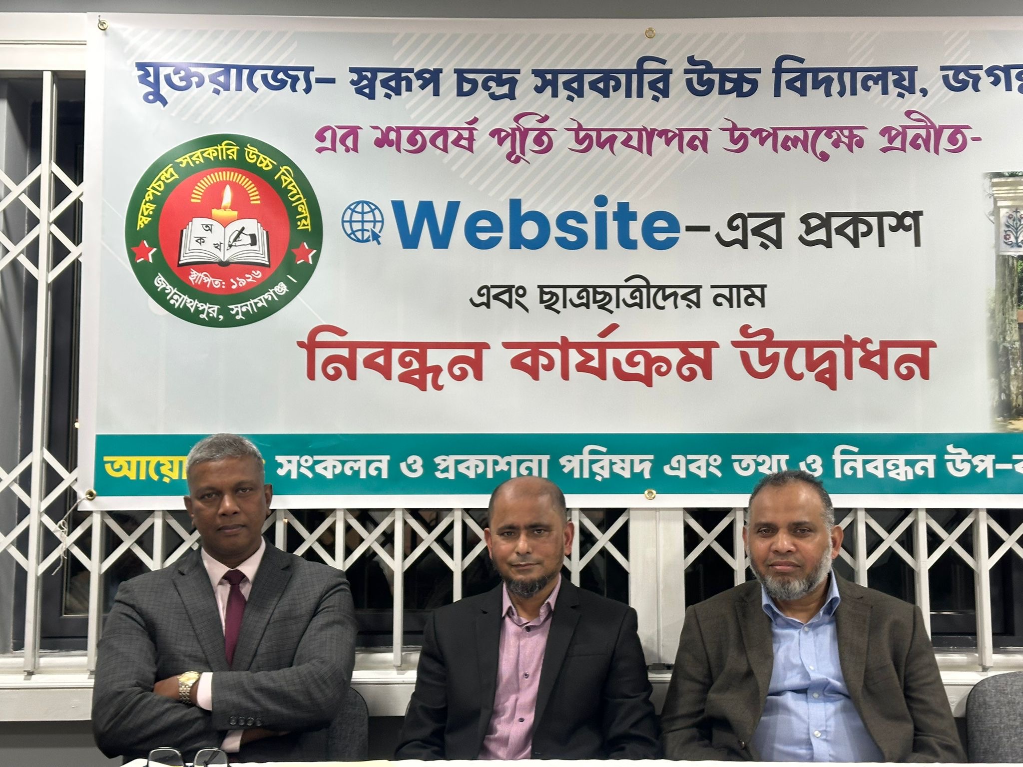 স্বরূপ চন্দ্র সরকারি উচ্চ বিদ্যালয় জগন্নাথপুর-এর শতবর্ষ উদযাপন বিষয়ক website -এর প্রকাশ ও ছাত্রছাত্রীদের নাম নিবন্ধন কার্যক্রম উদ্বোধন উপলক্ষে একটি বিশেষ অনুষ্ঠান অনুষ্ঠিত হয় ।